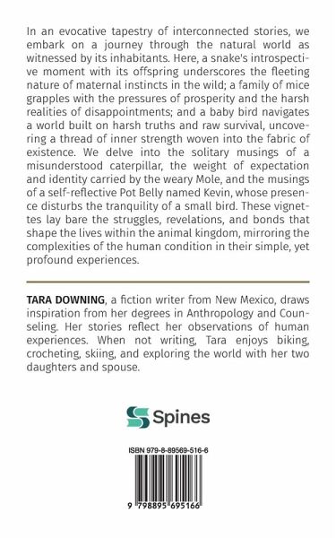 In an evocative tapestry of interconnected stories, we embark on a journey through the natural world as witnessed by its inhabitants. Here, a snake's introspective moment with its offspring underscores the fleeting nature of maternal instincts in the wild; a family of mice grapples with the pressures of prosperity and the harsh realities of disappointments; and a baby bird navigates a world built on harsh truths and raw survival, uncovering a thread of inner strength woven into the fabric of existence. We delve into the solitary musings of a misunderstood caterpillar, the weight of expectation and identity carried by the weary Mole, and the musings of a self-reflective Pot Belly named Kevin, whose presence disturbs the tranquility of a small bird. These vignettes lay bare the struggles, revelations, and bonds that shape the lives within the animal kingdom, mirroring the complexities of the human condition in their simple, yet profound experiences.