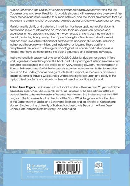 Human Behavior in the Social Environment returns for a seventh edition to provide students with an expansive overview of the major theories and issues related to human behavior and the social environment that are important to understand for professional practice across a variety of cases and contexts.