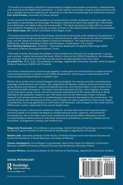 'This book is excellent collection of psychological insights into people's perception, understanding and reactions to the SARS-CoV-2 pandemic. The scholarly analysis of individual, group and societal dynamics deals with emotions, risk perception and decision making, trust in experts and institutions, adaptation processes and the fight against restrictions to regain the lost freedom...a must-read for everybody trying to understand the crisis and a valuable source for students and researchers in the field of psychology and behavioral sciences.'