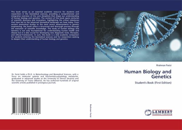 This book serves as an essential academic resource for students and researchers in the biomedical sciences, providing a comprehensive and integrative overview of the core disciplines that shape our understanding of human biology and genetics. The content of this book spans centuries of scientific discovery and innovation, highlighting the critical milestones that have led to the advanced biomedical landscape we have today. From ancient anatomical studies to the most recent advancements in genetic engineering, the book offers a structured and thorough journey through the evolution of scientific knowledge. The study of human biology and Genetics is not only foundational for understanding human health and disease but it is also crucial for developing new diagnostic tools, therapies, and ethical frameworks. In sum, this book is a vital academic companion for students entering the biomedical sciences and for researchers seeking to deepen their understanding of human biology and genetics.