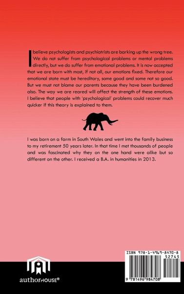 I believe psychologists and psychiatrists are barking up the wrong tree. We do suffer from psychological problems or mental problems directly, but we do suffer from emotional problems. It is now accepted that we are born with most, if not all, our emotions fixed. Therefore, our emotional state must be hereditary, some good and some not so good. But we must not blame our parents, because they have been burdened also. The way we are reared will affect the strength of these emotions. I believe that people with "psychological" problems could recover much quicker if this theory is explained to them.…mehr