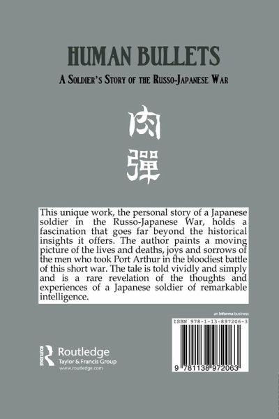 First published in 2008. This unique work, the personal story of a Japanese soldier in the Russo-Japanese War, holds a fascination that goes far beyond the historical insights it offers. The author paints a moving picture of the lives and deaths, joys and sorrows of the men who took Port Arthur in the bloodiest battle of this short war. The tale is told vividly and simply and is a rare revelation of the thoughts and experiences of a Japanese soldier of remarkable intelligence.