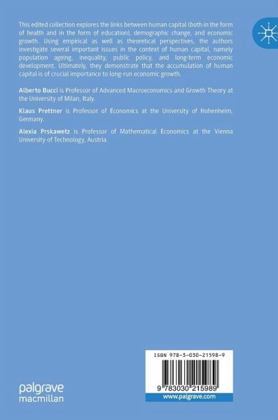 Alberto Bucci is Professor of Advanced Macroeconomics and Growth Theory at the University of Milan, Italy. Klaus Prettner is Professor of Economics at the University of Hohenheim, Germany. Alexia Prskawetz is Professor of Mathematical Economics at the Vienna University of Technology, Austria.