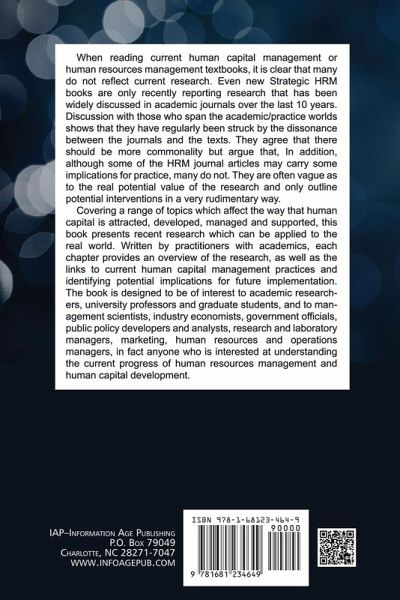 A volume in Contemporary Perspectives in Human Capital and Development When reading current human capital management or human resources management textbooks, it is clear that many do not reflect current research. Even new Strategic HRM books are only recently reporting research that has been widely discussed in academic journals over the last 10 years. Discussion with those who span the academic/practice worlds shows that they have regularly been struck by the dissonance between the journals and the texts. They agree that there should be more commonality but suggest that, although some of the HRM journal articles may carry some implications for practice, many do not. They are often vague as to the real potential value of the research and only outline potential interventions in a very rudimentary way. Covering a range of topics which affect the way that human capital is attracted, developed, managed and supported, this book presents recent research which can be applied to the real world. Written by practitioners with academics, each chapter provides an overview of the research, as well as the links to current human capital management practices and identifying potential implications for future implementation. The book is designed to be of interest to academic researchers, university professors and graduate students, and to management scientists, industry economists, government officials, public policy developers and analysts, research and laboratory managers, marketing, human resources and operations managers, in fact anyone who is interested at understanding the current progress of human resources management and human capital development.
