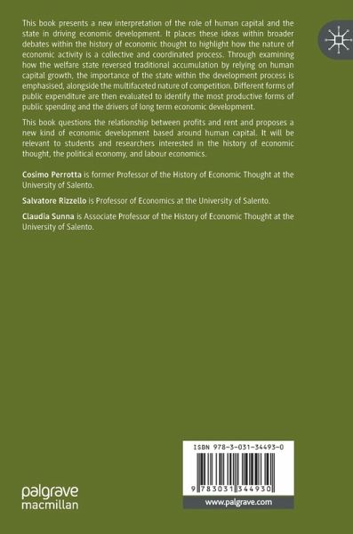 This book presents a new interpretation of the role of human capital and the state in driving economic development. It places these ideas within broader debates within the history of economic thought to highlight how the nature of economic activity is a collective and coordinated process. Through examining how the welfare state reversed traditional accumulation by relying on human capital growth, the importance of the state within the development process is emphasised, alongside the multifaceted nature of competition. Different forms of public expenditure are then evaluated to identify the most productive forms of public spending and the drivers of long term economic development.