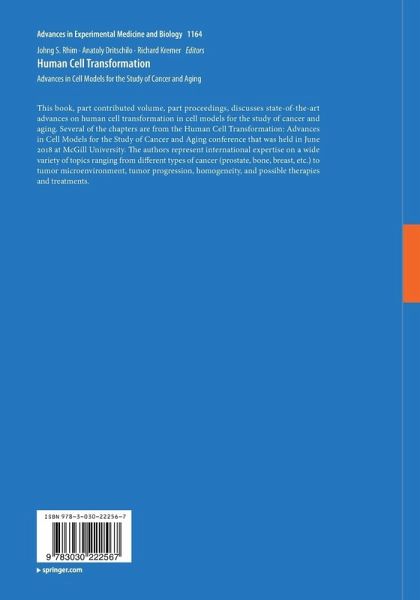This book, part contributed volume, part proceedings, discusses state-of-the-art advances on human cell transformation in cell models for the study of cancer and aging. Several of the chapters are from the Human Cell Transformation: Advances in Cell Models for the Study of Cancer and Aging conference that was held in June 2018 at McGill University. The authors represent international expertise on a wide variety of topics ranging from different types of cancer (prostate, bone, breast, etc.) to tumor microenvironment, tumor progression, homogeneity, and possible therapies and treatments.