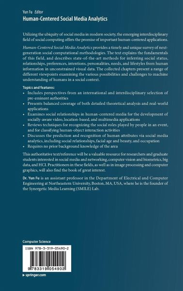 This book provides a timely and unique survey of next-generation social computational methodologies. The text explains the fundamentals of this field, and describes state-of-the-art methods for inferring social status, relationships, preferences, intentions, personalities, needs, and lifestyles from human information in unconstrained visual data. Topics and features: includes perspectives from an international and interdisciplinary selection of pre-eminent authorities; presents balanced coverage of both detailed theoretical analysis and real-world applications; examines social relationships in human-centered media for the development of socially-aware video, location-based, and multimedia applications; reviews techniques for recognizing the social roles played by people in an event, and for classifying human-object interaction activities; discusses the prediction and recognition of human attributes via social media analytics, including social relationships, facial age and beauty,and occupation.