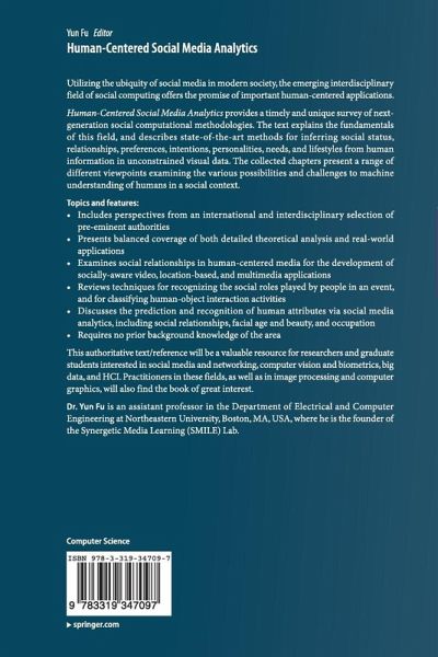"Human-Centered Social Media Analytics focuses on the novel social computational methodologies that are being developed to investigate social media data. ... Scholars, both new and established, should consider reading ... to gain an understanding of the questions they should pursue and the challenges they must overcome as they strive to advance big data and social media analytics research." (Pratyush Bharati, Interfaces, Vol. 47 (3), May-June, 2017)