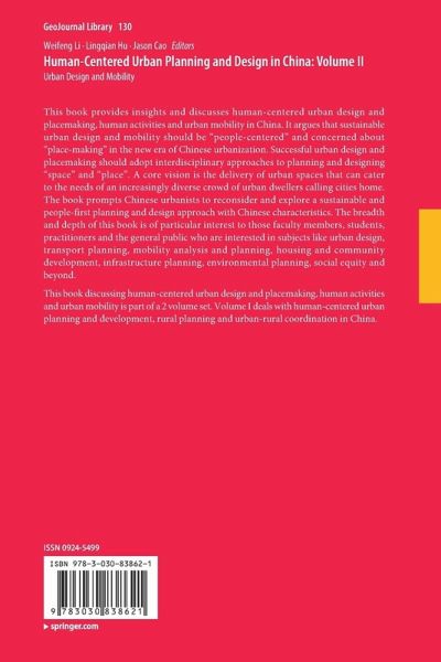 This book discussing human-centered urban design and placemaking, human activities and urban mobility is part of a 2 volume set. Volume I deals with human-centered urban planning and development, rural planning and urban-rural coordination in China.