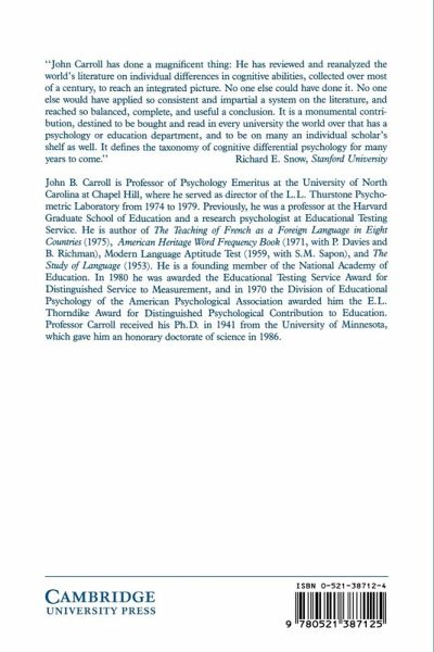 This long awaited work surveys and summarizes the results of more than seventy years of investigation into human cognitive ability. This 1993 work surveys and summarizes the results of more than seventy years of investigation, by factor analysis, of a variety of cognitive abilities, with particular attention to language, thinking, memory, visual and auditory perception, creativity and the production of ideas, and the speed and accuracy of mental processing.