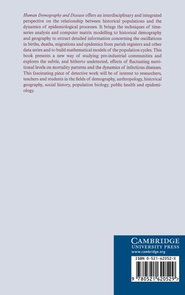 Human Demography and Disease offers an interdisciplinary and integrated perspective on the relationship between historical populations and the dynamics of epidemiological processes. It brings the techniques of time-series analysis and computer matrix modelling to historical demography and geography to extract detailed information concerning the oscillations in births, deaths, migrations and epidemics from parish registers and other data series and to build mathematical models of the population cycles. This book presents a new way of studying pre-industrial communities and explores the subtle, and hitherto undetected effects of fluctuating nutritional levels on mortality patterns and the dynamics of infectious diseases. It will be of interest to researchers, teachers and students in the fields of demography, anthropology, historical geography, social history, population biology and epidemiology.