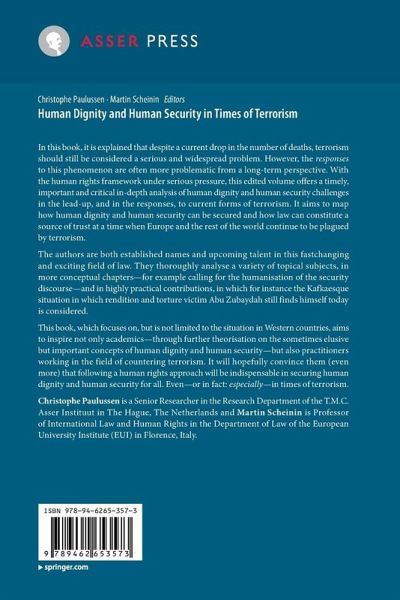 This book, which focuses on, but is not limited to the situation in Western countries, aims to inspire not only academics-through further theorisation on the sometimes elusive but important concepts of human dignity and human security-but also practitioners working in the field of countering terrorism. It will hopefully convince them (even more) that following a human rights approach will be indispensable in securing human dignity and human security for all. Even-or in fact: especially-in times of terrorism.