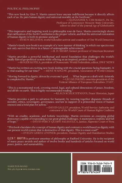 We must establish our world order on the principles of human dignity if we want a credible future for humanity. This book shows how and why this is so. It investigates the meaning of human dignity in relation to current scholarly work as well as in terms of the depths of our subjective lives from which the concept of dignity arises. It contrasts the concept of dignity with our current world system engulfed in endless wars, immense inequality, systems of economic injustice, and on-going environmental destruction. It shows the relationship between dignity, human rights, and global moral principles and lays out ten fundamental principles for a planetary ethics. The book contrasts the holistic paradigm uncovered by 20th century science with the fragmented paradigm that persists at the heart of the present world system, showing how and why a conversion to holism and dignity is both necessary and possible. Human Dignity and World Order shows that we have not yet fully understood our human existential situation as temporal beings oriented toward the future who possess the largely untapped power of a liberating "utopian imagination." Through examining our fundamental human condition, it unveils our vast potential for self-transcendence and transformation leading toward a redeemed and credible human future in which we flourish on the Earth within a planetary civilization of freedom, justice, peace, and sustainable prosperity. This book also presents the Constitution for the Federation of Earth as a paradigm or model for practical action toward a credible human future. Altogether, the book constitutes a watershed in human self-understanding, opening possibilities for the future hitherto ignored or misunderstood. Every thoughtful person concerned for our common human future needs to read this book.