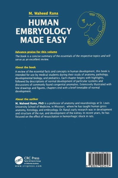 This book is a synopsis of the key facts and concepts of human development. It is intended for students who are taking a human embryology course. The book includes the underlying mechanisms involved in clinically important congenital anomalies that will prove useful to medical and nursing.