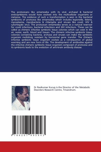 The protozoans like entamoeba with its viral, archaeal & bacterial endosymbionts would have evolved into the multicellular organisms or metazoa. The evidence of such a transformation is seen in the bacterial symbionts of protozoa like entamoeba which includes legionella, listeria, mycoplasma, mycobacteria & chlamydia and viruses like covid, HIV & cytomegalo virus. The protozoan entamoeba serves as a natural reservoir for covid infections, bacterial infections and HIV infections. These can be called as chimeric infective symbiotic tissue colonies which can exist in the air, water, earth, blood and tissues. The chimeric infective symbiotic tissue colonies containing bacteria, archaea and viruses can make the symbiotic organism multidrug resistant by horizontal gene transfer. The chimeric infective symbiotic tissue organism evolves as a consequence of global warming and are new form of life. The development of antibodies against the infective chimeric symbiotic tissue organism composed of protozoa and its symbionts leads to the evolution of anti-brain antibody disease.