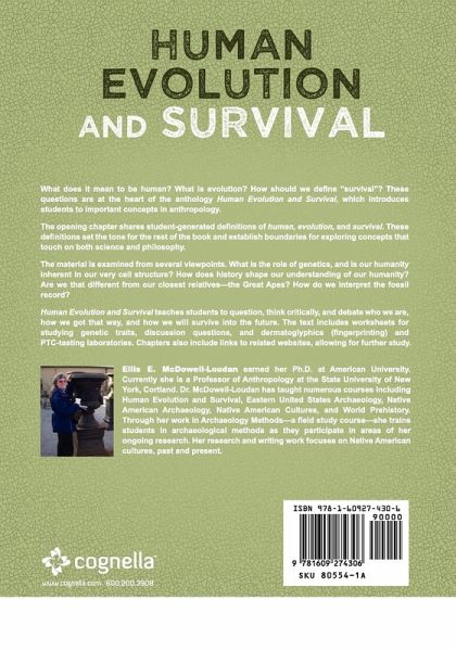 What does it mean to be human? What is evolution? How should we define ¿survival¿? These questions are at the heart of the anthology Human Evolution and Survival, which introduces students to important concepts in anthropology. The opening chapter shares student-generated definitions of human, evolution, and survival. These definitions set the tone for the rest of the book and establish boundaries for exploring concepts that touch on both science and philosophy. Subsequent chapters explore a variety of topics including: How scientific method is used to question, test, and re-test data What to do when confronted with scientific error¿even one's own Nature vs. Nurture/Genetics vs. Culture Pre-hominids and controversies surrounding them The material is examined from several viewpoints. What is the role of genetics, and is our humanity inherent in our very cell structure? How does history shape our understanding of our humanity? Are we that different from our closest relatives¿the Great Apes? How do we interpret the fossil record? Human Evolution and Survival teaches students to question, think critically, and debate who we are, how we got that way, and how we will survive into the future. The text includes worksheets for studying genetic traits, discussion questions, and dermatoglyphics (fingerprinting) and PTC-tasting laboratories. Chapters also include links to related websites, allowing for further study. Human Evolution and Survival can be used in courses on Human Evolution, Physical Anthropology, and Biological Anthropology. It is also appropriate for courses on Genetics and Diversity. Ellis E. McDowell-Loudan earned her Ph.D. at American University. Currently she is a Professor of Anthropology at the State University of New York, Cortland. Dr. McDowell-Loudan has taught numerous courses including Human Evolution and Survival, Eastern United States Archaeology, Native American Archaeology, Native American Cultures, and World Prehistory. Through her work in Archaeology Methods¿a field study course¿she trains students in archaeological methods as they participate in areas of her ongoing research. Her research and writing work focuses on Native American cultures, past and present.