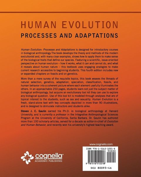 Human Evolution: Processes and Adaptations is designed for introductory courses in biological anthropology. The book develops the theory and methods of the modern evolutionist and, with many clear examples, shows how to apply them to make sense of the biological traits that define our species. Featuring a scientific, issue-oriented perspective on human evolution – how it works, what it can and cannot do, and what it reveals about human nature – this textbook uses engaging analogies to make current research accessible to beginning students. This fourth edition includes new or expanded chapters on fossils and on genetics. More than a mere survey of the requisite topics, this book weaves the threads of natural selection, genetics, adaptation, speciation, classification, fossils, and human behavior into a coherent picture where each element usefully illuminates the others. In an approachable 250 pages, students learn not just the subject matter of biological anthropology, but acquire an evolutionary tool kit they can use to explore any biological question. Use of this tool kit is modeled through analyses that are of topical interest to the students, such as sex and sexuality. Human Evolution is a fresh, stand-alone text with key concepts depicted in more than 90 illustrations, and is designed to stimulate instructors and students alike. Prerecorded video lectures are available for each chapter of the book. Steven J. C. Gaulin earned his Ph.D. in biological anthropology at Harvard University, and is currently a professor in the Integrative Anthropological Sciences Program at the University of California, Santa Barbara. Dr. Gaulin has authored more than 100 scholarly articles, served for a decade as editor-in-chief of Evolution and Human Behavior, and recently won his university’s highest teaching award.