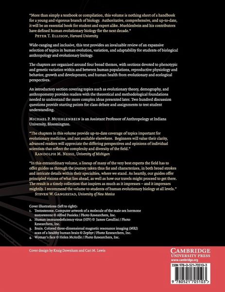 Wide-ranging and inclusive, this text provides an invaluable review of an expansive selection of topics in human evolution, variation and adaptability for professionals and students in biological anthropology, evolutionary biology, medical sciences and psychology. The chapters are organized around four broad themes, with sections devoted to phenotypic and genetic variation within and between human populations, reproductive physiology and behavior, growth and development, and human health from evolutionary and ecological perspectives. An introductory section provides readers with the historical, theoretical and methodological foundations needed to understand the more complex ideas presented later. Two hundred discussion questions provide starting points for class debate and assignments to test student understanding.
