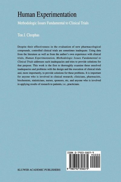 Despite their effectiveness in the evaluation of new pharmacological compounds, controlled clinical trials are sometimes inadequate. Using data from the literature as well as from the author's own experience with clinical trials, Human Experimentation: Methodologic Issues Fundamental to Clinical Trials addresses such inadequacies and tries to provide solutions. This work is the first to thoroughly examine these unsolved inadequacies and problems with the design and the execution of clinical trials and, more importantly, to provide solutions for these problems. It is important for anyone who is involved in clinical research: clinicians, pharmacists, biochemists, statisticians, nurses, sponsors, etc., and anyone who is involved in applying results of research to patients, i.e. physicians.