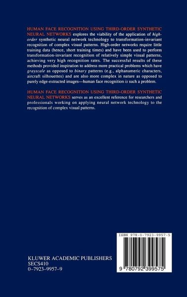 Human Face Recognition Using Third-Order Synthetic Neural Networks explores the viability of the application of High-order synthetic neural network technology to transformation-invariant recognition of complex visual patterns. High-order networks require little training data (hence, short training times) and have been used to perform transformation-invariant recognition of relatively simple visual patterns, achieving very high recognition rates. The successful results of these methods provided inspiration to address more practical problems which have grayscale as opposed to binary patterns (e.g., alphanumeric characters, aircraft silhouettes) and are also more complex in nature as opposed to purely edge-extracted images - human face recognition is such a problem.