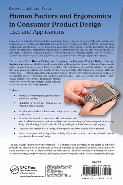 Every day we interact with thousands of consumer products. We not only expect them to perform their functions safely, reliably, and efficiently, but also to do it so seamlessly that we don't even think about it. However, with the many factors involved in consumer product design, from the application of human factors and ergonomics principles to reducing risks of malfunction and the total life cycle cost, well, the process just seems to get more complex. Edited by well-known and well-respected experts, the two-volumes of Handbook of Human Factors and Ergonomics in Consumer Product Design simplify this process. The second volume, Human Factors and Ergonomics in Consumer Product Design: Uses and Applications, discusses challenges and opportunities in the design for product safety and focuses on the critical aspects of human-centered design for usability. The book contains 14 carefully selected case studies that demonstrate application of a variety of innovative approaches that incorporate Human Factor and Ergonomics (HF/E) principles, standards, and best practices of user-centered design, cognitive psychology, participatory macro-ergonomics, and mathematical modeling. These case studies also identify many unique aspects of new product development projects, which have adopted a user-centered design paradigm as a way to attend to user requirements. The case studies illustrate how incorporating HF/E principles and knowledge in the design of consumer products can improve levels of user satisfaction, efficiency of use, increase comfort, and assure safety under normal use as well as foreseeable misuse of the product. The book provides a comprehensive source of information regarding new methods, techniques, and software applications for consumer product design.