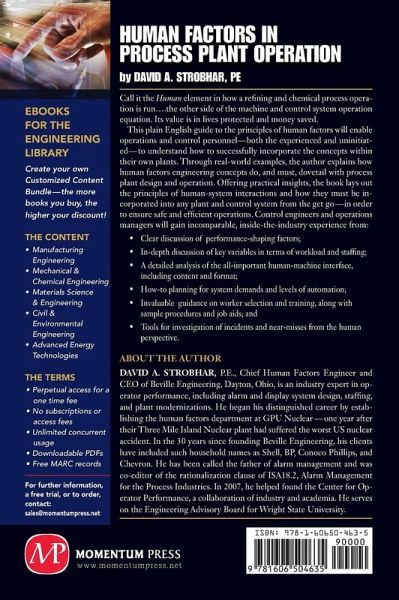 Call it the Human element in how a refining and chemical process operation is run....the other side of the machine and control system operation equation. Its value is in lives protected and money saved. This plain English guide to the principles of human factors will enable operations and control personnel-both the experienced and uninitiated- to understand how to successfully incorporate the concepts within their own plants. Through real-world examples, the author explains how human factors engineering concepts do, and must, dovetail with process plant design and operation. Offering practical insights, the book lays out the principles of human-system interactions and how they must be incorporated into any plant and control system from the get go-in order to ensure safe and efficient operations. Control engineers and operations managers will gain incomparable, inside-the-industry experience from: ¿ Clear discussion of performance-shaping factors; ¿ In-depth discussion of key variables in terms of workload and staffing; ¿ A detailed analysis of the all-important human-machine interface, including content and format; ¿ How-to planning for system demands and levels of automation; ¿ Invaluable guidance on worker selection and training, along with sample procedures and job aids; and ¿ Tools for investigation of incidents and near-misses from the human perspective.