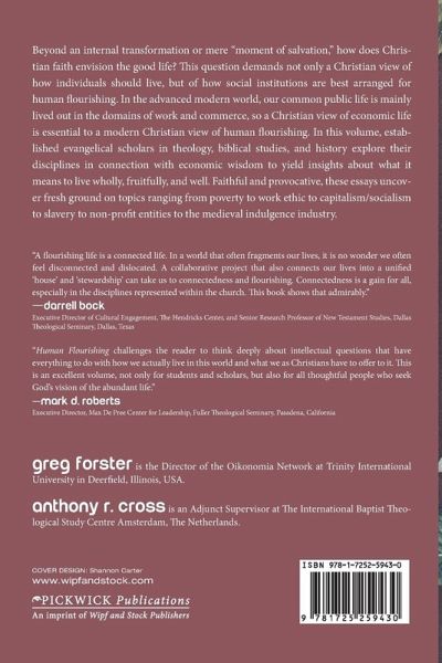 Beyond an internal transformation or mere ""moment of salvation,"" how does Christian faith envision the good life? This question demands not only a Christian view of how individuals should live, but of how social institutions are best arranged for human flourishing. In the advanced modern world, our common public life is mainly lived out in the domains of work and commerce, so a Christian view of economic life is essential to a modern Christian view of human flourishing. In this volume, established evangelical scholars in theology, biblical studies, and history explore their disciplines in connection with economic wisdom to yield insights about what it means to live wholly, fruitfully, and well. Faithful and provocative, these essays uncover fresh ground on topics ranging from poverty to work ethic to capitalism/socialism to slavery to non-profit entities to the medieval indulgence industry.