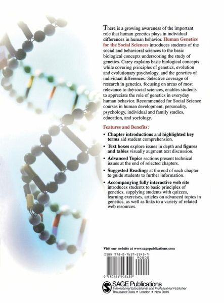 '...a useful text for aquiring a solid grounding in behavioural genetics.... the figures are excellent providing a clear accompaniment to the text' Human Psychopharmacology Human Genetics for the Social Sciences introduces psychology and other social science students to the role genetics play in the individual differences in human behaviour. There is a growing awareness of the importance of this role, yet many behavioural scientists have little background in even basic biology, much less training in genetics. Many psychologists and psychology students lack the background to learn about human genetics through traditional texts written for biologists, medical students and geneticists. This broad-based text meets the need to explain genetics to this audience in a non-technical, introductory fashion deliberately focussing on the `big' picture of genetics.