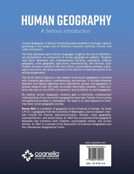 Human Geography: A Serious Introduction gives students a thorough, rigorous grounding in the subject and its historical, economic, political, cultural, and urban dimensions. The book addresses early cultures, languages, religions, the rise of capitalism, and globalization as components of human geographical systems. Students read about developed and underdeveloped societies, population, political geography, urban geography, agriculture, manufacturing, and services. Each chapter includes a preview of the main points, a post-reading summary, a glossary of key terms, and study questions to be used for in-class discussions or as writing assignments. The fourth edition features a new chapter on economic geography concerned with industrial agriculture, manufacturing, and services. It includes refreshed statistics and figures regarding world populations, groups, and geography to provide students with the most up-to-date information possible. It also contains new data on the COVID-19 pandemic and its effects on world geography. By reading Human Geography, students gain a historically contextualized understanding of how the world's geographies have been formed, from hunting and gathering societies to cyberspace. The book is an idea resource for freshman-level human geography courses.