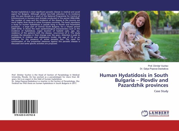 Human hydatidosis is most significant parasitic disease in medical and social aspect for Bulgaria. Although almost two-fold reduction in its incidence over the past decade as a result of the National Programme for Control of Echinococcosis in Humans and Animals conducted in the period 2004-2008, the number of cases and the incidence of the disease in the country are much higher than those in other European countries. The book represents ¿ study on human hydatidosis in people living in Plovdiv and Pazardzhik provinces - a large part of Central South Bulgaria, for a 10-year period (2007-2016). It shows the main epidemiological characteristics such as the incidence of hydatidosis, organ location of hydatid cysts, age, sex, residence of the patients with the disease, recurrences of it. The study analyses the dynamics in their change over the years. Attention is paid to hydatidosis in children and adolescents (under the age of 19) as an indicator for the presence of active parasitic foci. The need for continuation of the preventive measures against this parasitic disease is discussed and some specific activities are proposed.