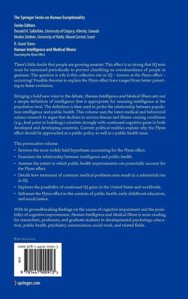 From the reviews: "The 218-page volume is divided into 13 chapters on topics ... in human intelligence. ... Human Intelligence and Medical Illness should be commended for taking an evidence-based approach to the topic of intelligence ... . The book is concise, timely, and generally well written. ... Overall, Human Intelligence and Medical Illness is a thought-provoking book that is well worth reading. If you are interested in how to improve human intelligence, then this book is for you." (Richard E. Mayer, PsycCRITIQUES, Vol. 55 (4), January, 2010) "This book explores the nature of IQ testing, changes that have occurred, and conditions that can impact it. ... to provide readers with comprehensive information about intelligence testing, trends, and current literature. ... Clinical and school psychologists would find this book interesting, but others working in developmental fields also would find it of use. ... This is a superficial review of the intellectual issues presented." (Christopher J. Graver, Doody's Review Service, April, 2010)