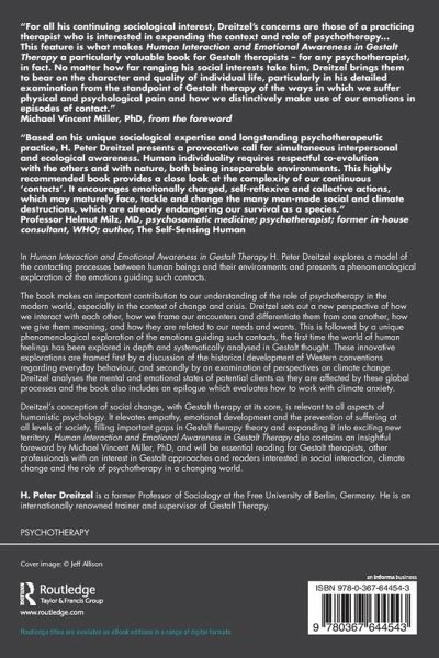 In Human Interaction and Emotional Awareness in Gestalt Therapy H. Peter Dreitzel explores a model of the contacting processes between human beings and their environments and presents a phenomenological exploration of the emotions guiding such contacts.