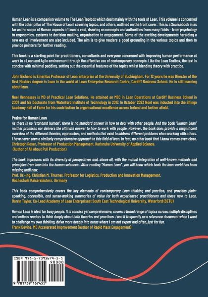 'Lean' in this title refers to operations management, the Toyota Production System, and its derivatives. The book is a companion volume to The Lean Toolbox which focused on operational tools and techniques whereas this book is focused on the essential human aspects of Lean transformation. The book is a sourcebook for practitioners and managers covering a wide range of concepts, providing sufficient information to grasp the essentials of each topic and giving leads to further reading. The Chapters include Antecedents and myths, Established Lean people practices, Eight models of people at work, Systems aspects, Psychology aspects, Engagement, Problems, Decisions, Learning, Leadership, Teams, Organisations, Ergonomics. The work of more than 150 authorities from operations, psychology, systems, and change are drawn on to give a comprehensive overview. The authors' extensive knowledge and experience complement each section. As with The Lean Toolbox, the text is concise, written for busy managers who seek both a guide and a quick reference.
