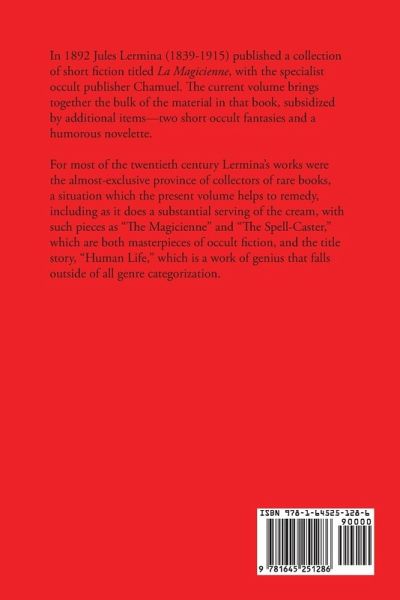 In 1892 Jules Lermina (1839-1915) published a collection of short fiction titled La Magicienne, with the specialist occult publisher Chamuel. The current volume brings together the bulk of the material in that book, subsidized by additional items-two short occult fantasies and a humorous novelette. For most of the twentieth century Lermina's works were the almost-exclusive province of collectors of rare books, a situation which the present volume helps to remedy, including as it does a substantial serving of the cream, with such pieces as "The Magicienne" and "The Spell-Caster," which are both masterpieces of occult fiction, and the title story, "Human Life," which is a work of genius that falls outside of all genre categorization.
