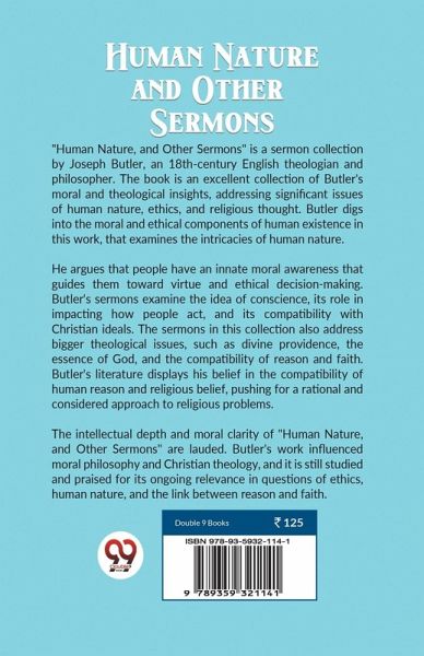 "Human Nature, and Other Sermons" is a sermon collection by Joseph Butler, an 18th-century English theologian and philosopher. The book is an excellent collection of Butler's moral and theological insights, addressing significant issues of human nature, ethics, and religious thought. Butler digs into the moral and ethical components of human existence in this work, that examines the intricacies of human nature. He argues that people have an innate moral awareness that guides them toward virtue and ethical decision-making. Butler's sermons examine the idea of conscience, its role in impacting how people act, and its compatibility with Christian ideals. The sermons in this collection also address bigger theological issues, such as divine providence, the essence of God, and the compatibility of reason and faith. Butler's literature displays his belief in the compatibility of human reason and religious belief, pushing for a rational and considered approach to religious problems. The intellectual depth and moral clarity of "Human Nature, and Other Sermons" are lauded. Butler's work influenced moral philosophy and Christian theology, and it is still studied and praised for its ongoing relevance in questions of ethics, human nature, and the link between reason and faith.