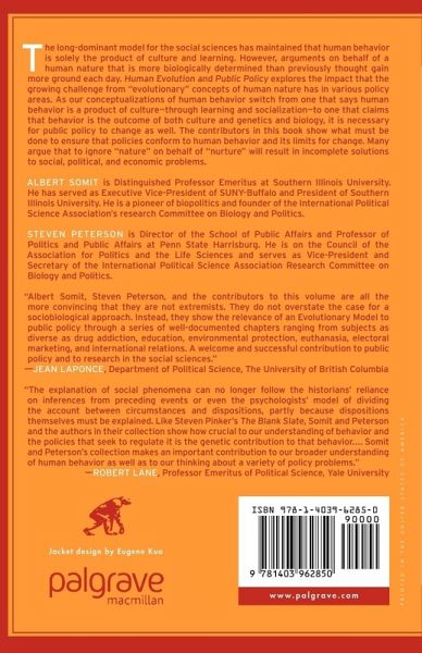 Arguing for an evolutionary perspective, this book directly challenges the Standard Social Science Model (SSSM) on which public policy has often been based. The SSSM maintains that human behavior is solely the product of culture and learning. In sharp contrast, the Evolutionary Model (EM) holds that our behavior flows from the interaction between learning and culture, on the one hand, and biological factors-especially our evolutionary legacy-on the other. These different approaches to human behavior understandably lead to divergent conceptions of sound domestic and foreign policy. The SSSM views human behavior as essentially plastic and thus readily changed by governmental action. Disagreeing, the Evolutionary Model sees that malleability as seriously limited by our species' evolved propensity for aggression, status seeking, xenophobia, ethnocentrism, and hierarchical social structures.
