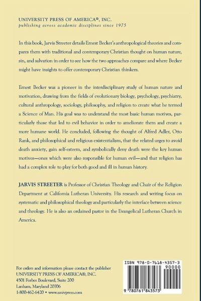 Jarvis Streeter details Ernest Becker's anthropological theories and compares them with traditional and contemporary Christian thought on human nature, sin, and salvation in order to see how the two approaches compare and where Becker might have insights to offer contemporary Christian thinkers.