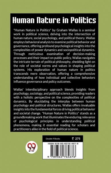 "Human Nature in Politics" by Graham Wallas is a seminal work in political science, delving into the intersection of human nature, social psychology, and political theory. Wallas employs behavioral analysis to examine political behavior and governance, offering profound psychological insights into the complexities of power dynamics and sociopolitical dynamics. Through meticulous examination of decision-making processes and their impact on public policy, Wallas navigates the intricate terrain of political philosophy, shedding light on the role of societal norms and values in shaping political systems. His exploration of human nature in politics transcends mere observation, offering a comprehensive understanding of how individual and collective behaviors influence governance and policy outcomes. Wallas' interdisciplinary approach blends insights from psychology, sociology, and political science, providing readers with a holistic perspective on the complexities of political dynamics. By elucidating the interplay between human psychology and political structures, Wallas offers invaluable insights into the fundamental forces driving political behavior and societal change. "Human Nature in Politics" stands as a groundbreaking work that illuminates the enduring relevance of psychological principles in understanding political phenomena, making it essential reading for scholars and practitioners alike in the field of political science.