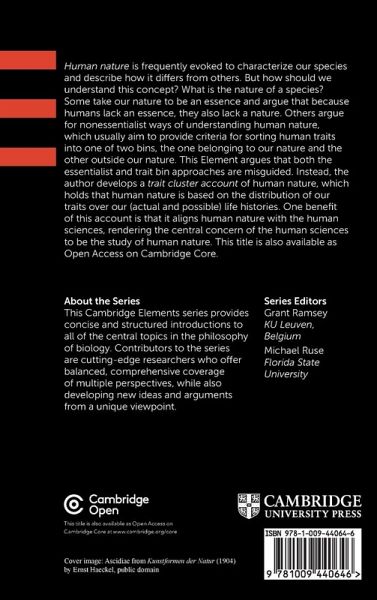 Human nature is frequently evoked to characterize our species and describe how it differs from others. But how should we understand this concept? What is the nature of a species? Some take our nature to be an essence and argue that because humans lack an essence, they also lack a nature. Others argue for non-essentialist ways of understanding human nature, which usually aim to provide criteria for sorting human traits into one of two bins, the one belonging to our nature and the other outside our nature. This Element argues that both the essentialist and trait bin approaches are misguided. Instead, the author develops a trait cluster account of human nature, which holds that human nature is based on the distribution of our traits over our (actual and possible) life histories. One benefit of this account is that it aligns human nature with the human sciences, rendering the central concern of the human sciences to be the study of human nature. This title is also available as Open Access on Cambridge Core.