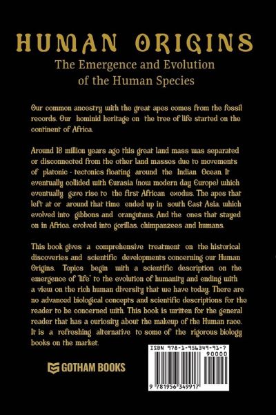 This book describes the origins of the Human species. It takes us through the stages of life from a single cell organism all the way to the emergence and evolution of humankind. In this book, it describes the major evolutionary processes that began here on Earth, which has lead, us to the discovery of the complex and diverse emergence of the many living and extinct creatures that have roamed the planet. The later chapters of the book focuses on the evolutionary changes of the human species from genetic variable adaptations and environmental stresses that lead to natural selection, giving rise to the vast array of Human hominids including modern humans.