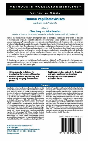 Leading basic researchers and clinical scientists describe in detail a wide variety of established and cutting-edge techniques they have developed to study the lifecycle and biological properties of the human papillomavirus. The authors use these readily reproducible methods, ranging from PCR to propagation of HPV in vitro, to detect and type papillomavirus infections, study the papillomavirus lifecycle, and to produce and functionally analyze papillomavirus proteins. The protocols follow the successful Methods in Molecular Medicine(TM) series format, each offering step-by-step laboratory instructions, an introduction outlining the principles behind the technique, lists of the necessary equipment and reagents, and tips on troubleshooting and avoiding known pitfalls.