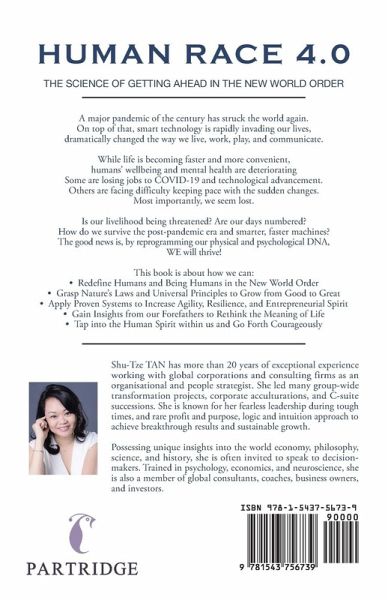 A major pandemic of the century has struck the world again. On top of that, smart technology is rapidly invading our lives, dramatically changed the way we live, work, play, and communicate. While life is becoming faster and more convenient, humans' wellbeing and mental health are deteriorating. Some are losing jobs to COVID-19 and technological advancement. Others are facing difficulty keeping pace with the sudden changes. Most importantly, we seem lost. Is our livelihood being threatened? Are our days numbered?How do we survive the post-pandemic era and smarter, faster machines? The good news is, by reprogramming our physical and psychological DNA,WE will thrive! This book is about how we can: Redefine Humans and Being Humans in the New World Order Grasp Nature's Laws and Universal Principles to Grow from Good to Great Apply Proven Systems to Increase Agility, Resilience, and Entrepreneurial Spirit Gain Insights from our Forefathers to Rethink the Meaning of Life Tap into the Human Spirit within us and Go Forth Courageously