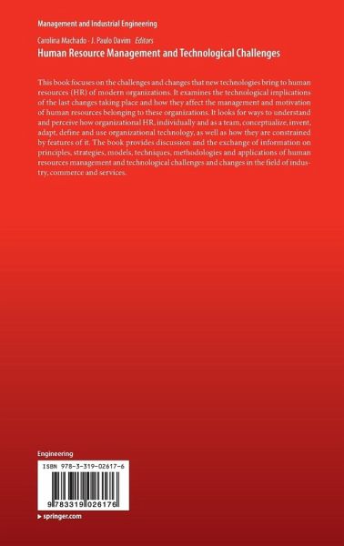 This book focuses on the challenges and changes that new technologies bring to human resources (HR) of modern organizations. It examines the technological implications of the last changes taking place and how they affect the management and motivation of human resources belonging to these organizations. It looks for ways to understand and perceive how organizational HR, individually and as a team, conceptualize, invent, adapt, define and use organizational technology, as well as how they are constrained by features of it. The book provides discussion and the exchange of information on principles, strategies, models, techniques, methodologies and applications of human resources management and technological challenges and changes in the field of industry, commerce and services.