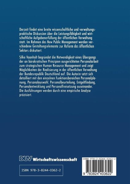 Der Titel der vorliegenden Schrift von Frau Silke Vaanholt "Human Resource Management in der öffentlichen Verwaltung" stellt eine große Herausforderung für die derzeitige Praxis der Steuerung des Personalbereichs in öffentlichen Verwaltungen dar. Diese basiert nach wie vor im wesentlichen auf dem Bürokratiemodell. Daran haben verschiedene Ansätze zur Dienstrechtsreform nicht viel geändert und wird auch das seit dem 1.07.1997 in Kraft getre tene Dienstrechtsreformgesetz künftig nicht viel ändern. Dies liegt vor allem daran, daß die Reformbemühungen nicht auf einer systematischen konzeptionellen Grundlage basierten und damit insgesamt nur Stückwerk produzierten. Aus internationaler Perspektive ist allerdings festzustellen, daß mit den wissenschaftlichen Ansätzen zum New Public Management und den praktischen Reformen vor allem in Nord amerika und Neuseeland eine neue öffentliche Verwaltung geschaffen wird, die sich Fort schritte der Management-und Organisationslehre sowie des Human Resource Management zunutze macht. In der Schrift wird diese Entwicklung, nämlich der längst fällige Übergang vom Bürokratie modell zum New Public Management, aufgegriffen und speziell hinsichtlich der Situation des öffentlichen Dienstes in der Bundesrepublik Deutschland behandelt. New Public Management basiert allerdings nicht auf einem geschlossenen Theoriegebäude, sondern stellt ein Sammelbecken für eine Reihe neuartiger Managementkonzepte dar. Dennoch stellt es mit seinen Gestaltungse1ementen auf wichtige Aspekte des Management ab. Hierzu zählen die Leistungstiefenoptimierung und der Einsatz von Wettbewerbselementen, Ansätze der Prozeßorganisation, das Qualitätsmanagement sowie der Einsatz betriebswirtschaftlicher Steuerungsinstrumente. Diese Elementewerden vor allem der gestiegenen Bedeutung des Bürgers als Verwaltungskunden gerecht.