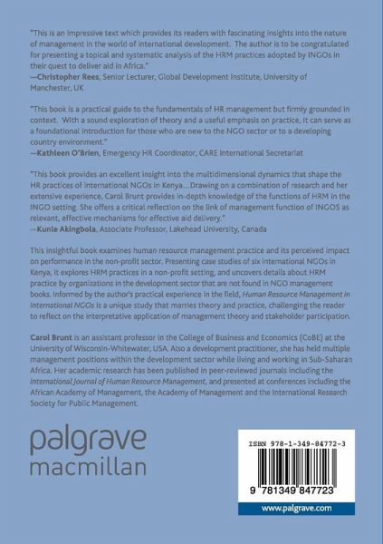 This insightful book examines human resource management practice and its perceived impact on performance in the non-profit sector. Presenting case studies of six NGOs in Kenya, it explores HRM practices in a non-profit setting, and uncovers details about HRM practice by organizations in the development sector that are not found in NGO management books. Informed by the author's practical experience in the field, Human Resource Management in International NGOs is a unique study that marries theory and practice, challenging the reader to reflect on the interpretative application of management theory and stakeholder participation.