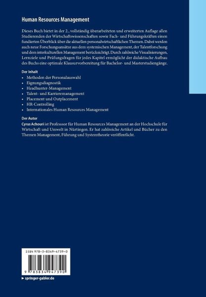 Dieses Buch bietet in der neuen Auflage allen Studierenden der Wirtschaftswissenschaften sowie Fach- und Führungskräften einen fundierten Überblick über die aktuellen personalwirtschaftlichen Themen. Dabei werden auch neue Forschungsansätze aus dem systemischen Management, der Talentforschung und dem interkulturellen Management berücksichtigt. Durch zahlreiche Visualisierungen, Lernziele und Prüfungsfragen für jedes Kapitel ermöglicht der didaktische Aufbau des Buchs eine optimale Klausurvorbereitung für Bachelor- und Masterstudiengänge.