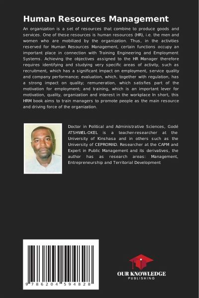 An organization is a set of resources that combine to produce goods and services. One of these resources is human resources (HR), i.e. the men and women who are mobilized by the organization. Thus, in the activities reserved for Human Resources Management, certain functions occupy an important place in connection with Training Engineering and Employment Systems. Achieving the objectives assigned to the HR Manager therefore requires identifying and studying very specific areas of activity, such as recruitment, which has a significant impact on employment, service quality and company performance; evaluation, which, together with regulation, has a strong impact on quality; remuneration, which satisfies part of the motivation for employment; and training, which is an important lever for motivation, quality, organization and interest in the workplace In short, this HRM book aims to train managers to promote people as the main resource and driving force of the organization.