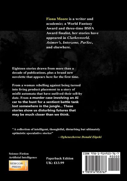 Fiona Moore is a Canadian-born academic, writer and critic living in London. Her work has been shortlisted for BSFA Awards and a World Fantasy Award. Her short fiction has appeared in Clarkesworld, Asimov's, Interzone, ParSec and elsewhere, and has been selected for four consecutive editions of The Best of British Science Fiction. Eighteen stories drawn from more than a decade of publications, plus the title story: a brand new novelette that appears here for the first time. From a woman rebelling against the corporation that has turned her into living, breathing product placement to a story of misfit automata that have outlived their sell-by date. From a murder case involving an AI car to the hunt for a sentient battle tank lost somewhere in the jungle... These stories show us disturbing futures that may be a lot closer than we like to think. Contents: Terms And Conditions Morning in the Republic of America Selma Eats Doomed Youth Leave Only Footprints The Ghosts of Trees Push A Little Button The Island of Misfit Toys Mnemotechnic The Kindly Race Proteus in the City That Fish Sex Movie Rabbit Season The Mouse Trap The Stepford App Jolene The Lori Human Resources Every Little Star About the Author Of The Lori: "From a technology perspective, this is a beautiful example of how real AI might fail." - Rocket Stack Rank Of Every Little Star: "It's a great story, well thought out and well dramatized" - Locus (staff pick)