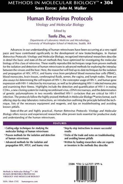 State-of-the-art and highly practical, Human Retrovirus Protocols: Virology and Molecular Biology offers novice and experienced researchers alike proven tools essential for productive study and understanding of the human retroviruses.