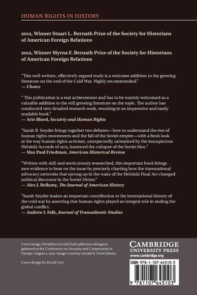 Two of the most pressing questions facing international historians today are how and why the Cold War ended. Human Rights Activism and the End of the Cold War explores how, in the aftermath of the signing of the Helsinki Final Act in 1975, a transnational network of activists committed to human rights in the Soviet Union and Eastern Europe made the topic a central element in East-West diplomacy. As a result, human rights eventually became an important element of Cold War diplomacy and a central component of détente. Sarah B. Snyder demonstrates how this network influenced both Western and Eastern governments to pursue policies that fostered the rise of organized dissent in Eastern Europe, freedom of movement for East Germans and improved human rights practices in the Soviet Union - all factors in the end of the Cold War.